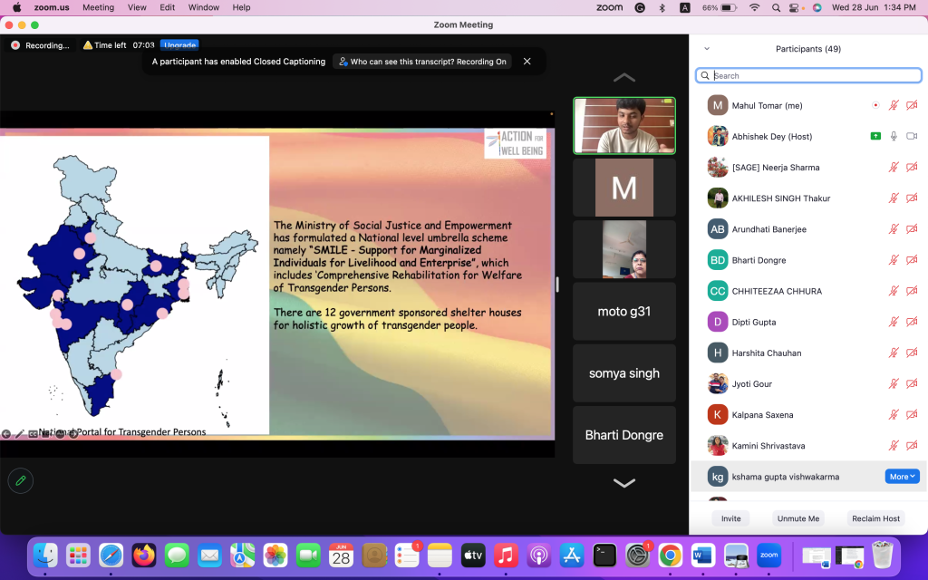 “Action for Well Being” organised a virtual interactive session with the teachers of SAGE International School, Bhopal on 28th June 2023 in order to educate them on how to create a more inclusive environment for all students to grow and what role a teacher can play to protect children from abuse.